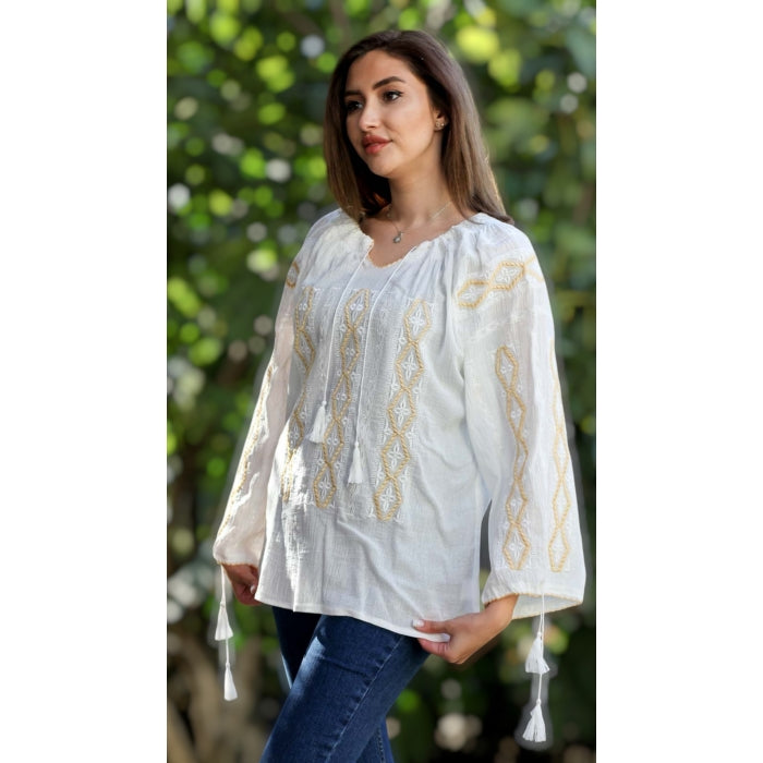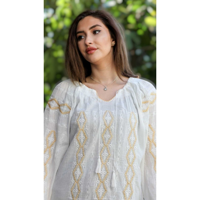 Ie traditionala brodata cu elemente naturale bogate si stralucitoare. O ie romaneasca stilizata deosebita, plina de culoare si rafinament. Delicatetea broderiei, puritatea materialului o fac o piesa de rezistenta in orice garderoba. Comanda acum ianationala!
