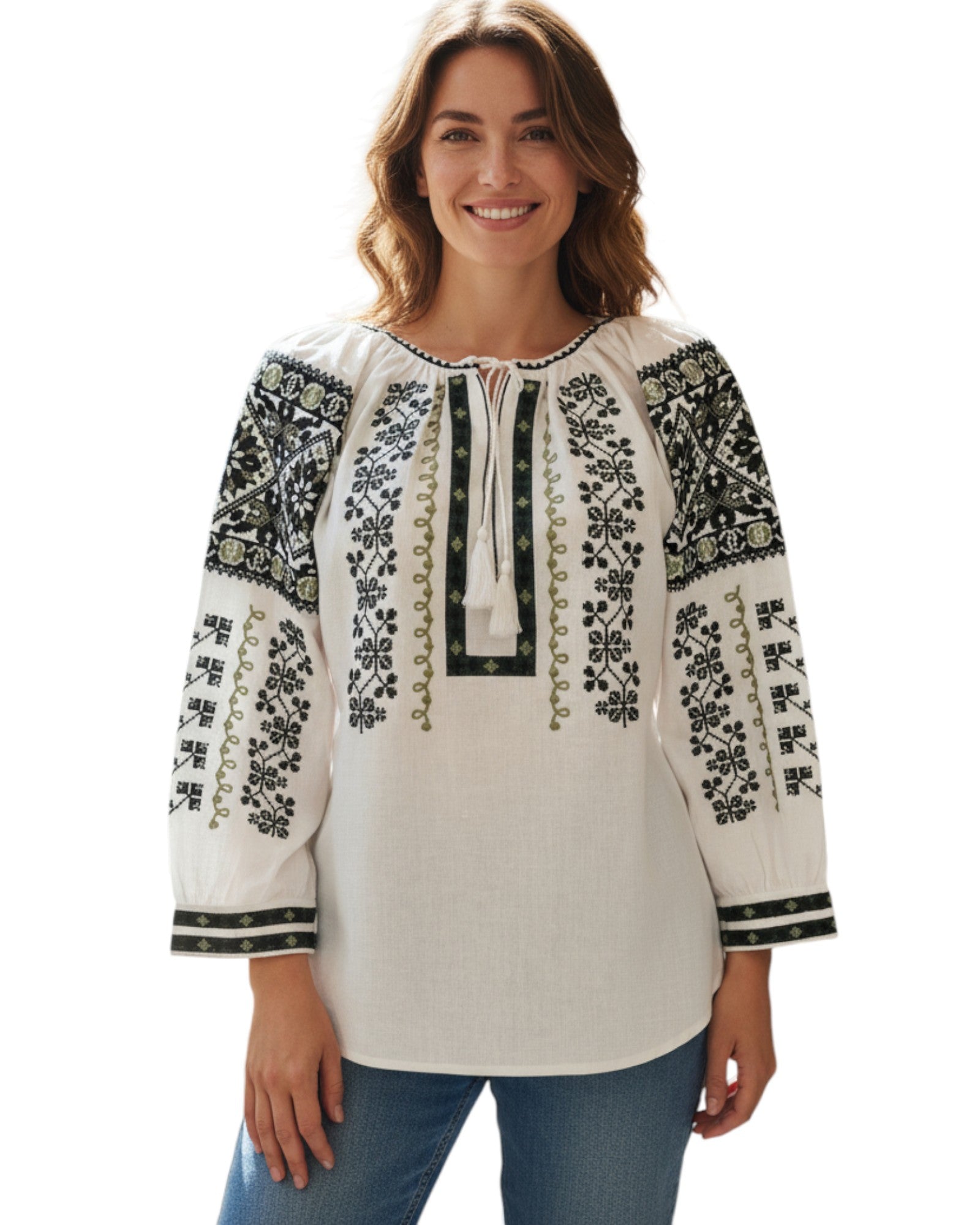 Descoperă Ie Tradițională Nationala, o bijuterie a tradiției românești, realizată din pânză de bumbac 100% și brodată la mașină. O capodoperă autentică, aducând la viață simbolurile culturii. Disponibilă în mărimi diverse - S până la 3XL. Vibrante și autentice, culorile vor aduce viață ținutelor tale. Transformă fiecare zi într-o călătorie prin istorie. Achiziționează acum de pe iiromanesti.com și abordează un stil autentic!