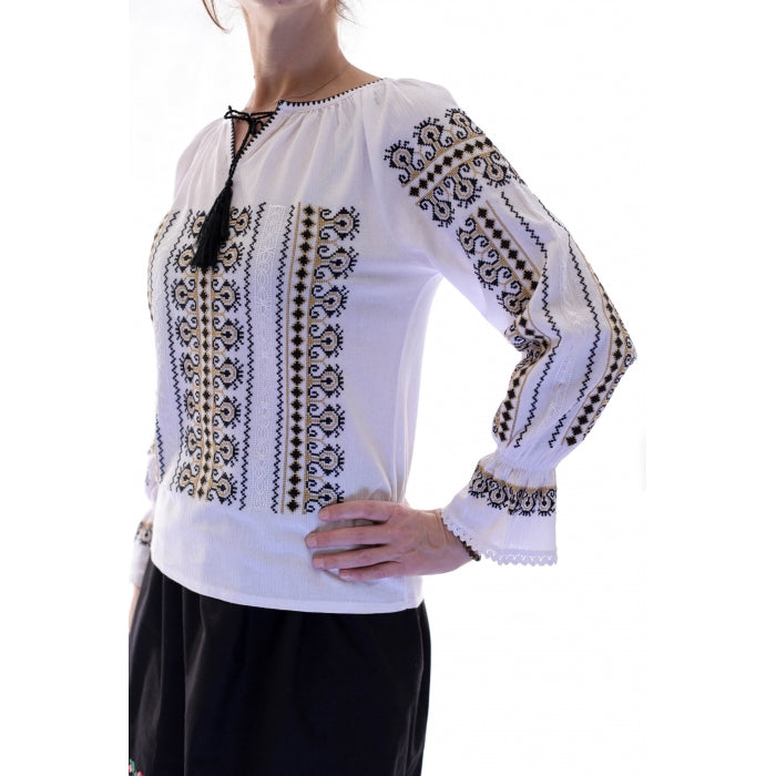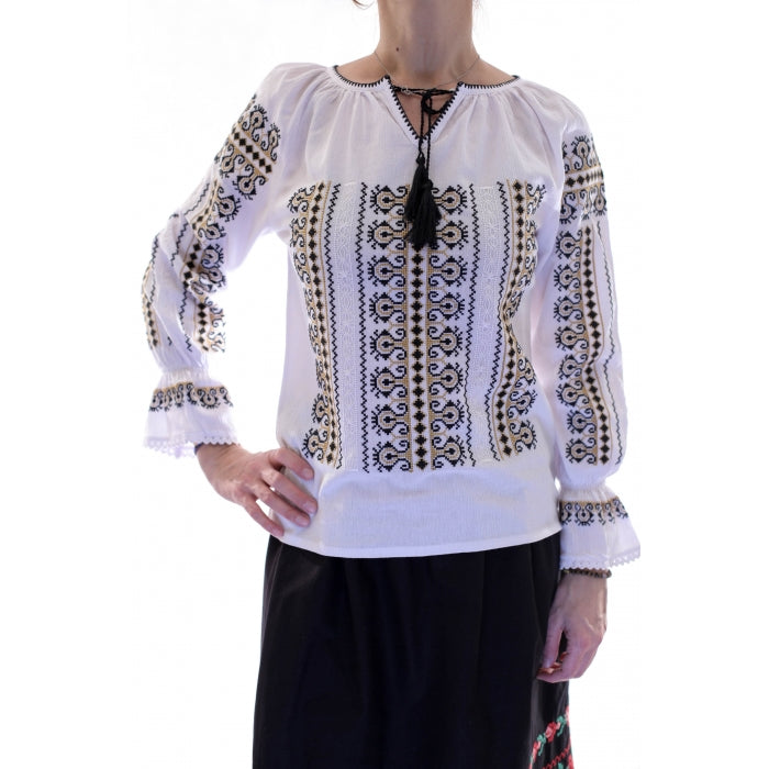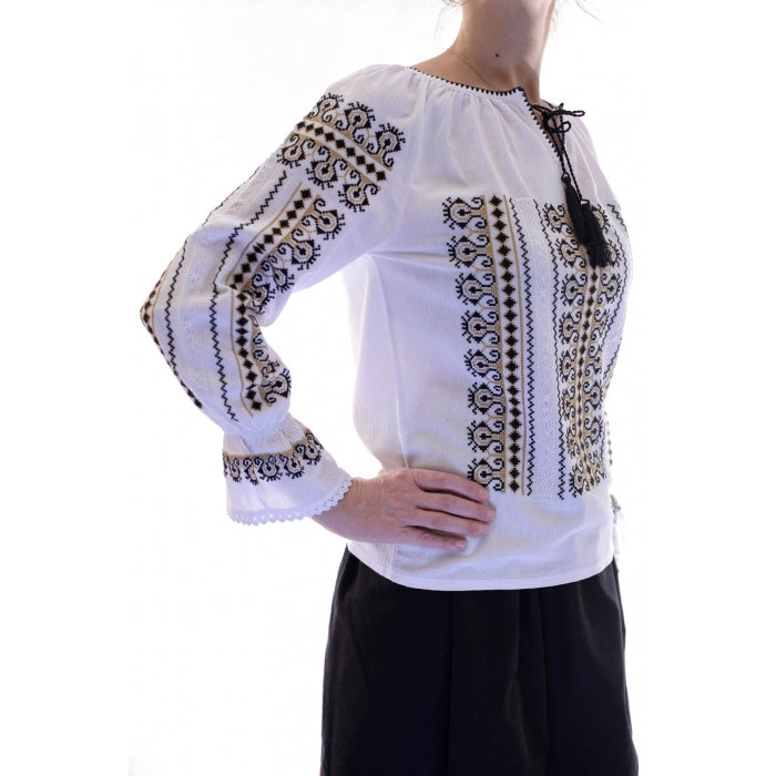 NEGRU simbolizeaza sobrietatea, intelepciunea si decenta. Pe vremuri iile brodate cu negru erau destinate femeilor in varsta, acum au devenit o piesa vestimentara eleganta esentiala in garderoba. Iile brodate cu negru transmit simplitate, eleganta si cinstea celei ce le poarta.