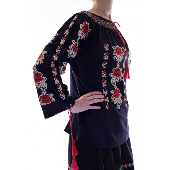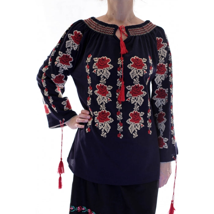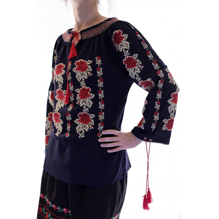 NEGRU simbolizeaza sobrietatea, intelepciunea si decenta. Pe vremuri iile brodate cu negru erau destinate femeilor in varsta, acum au devenit o piesa vestimentara eleganta esentiala in garderoba. Iile brodate cu negru transmit simplitate, eleganta si cinstea celei ce le poarta.