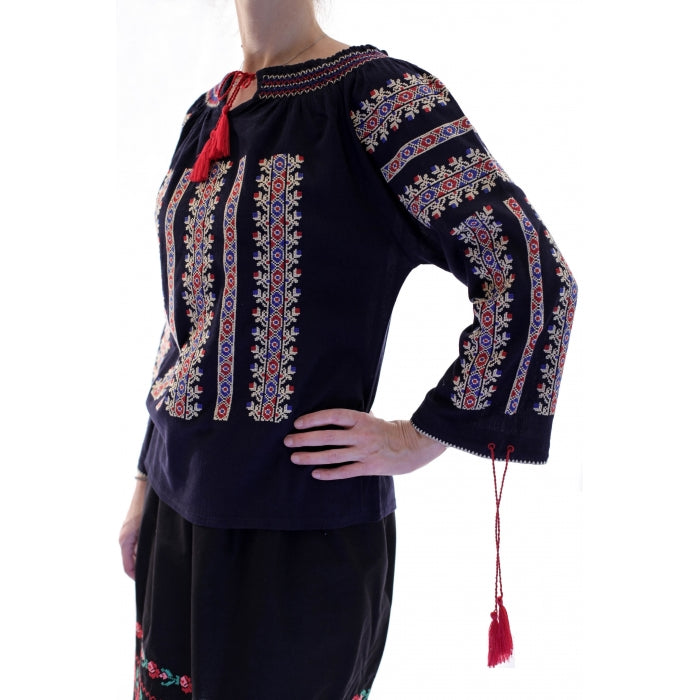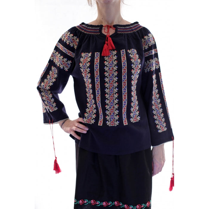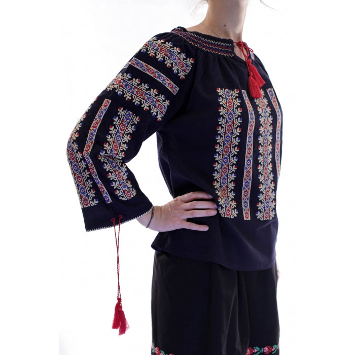 NEGRU simbolizeaza sobrietatea, intelepciunea si decenta. Pe vremuri iile brodate cu negru erau destinate femeilor in varsta, acum au devenit o piesa vestimentara eleganta esentiala in garderoba. Iile brodate cu negru transmit simplitate, eleganta si cinstea celei ce le poarta.