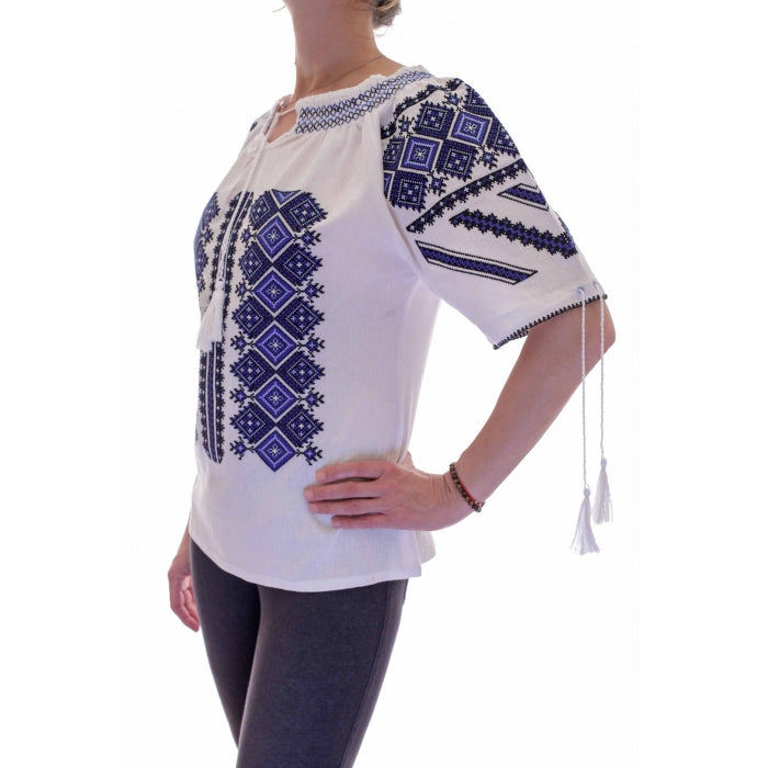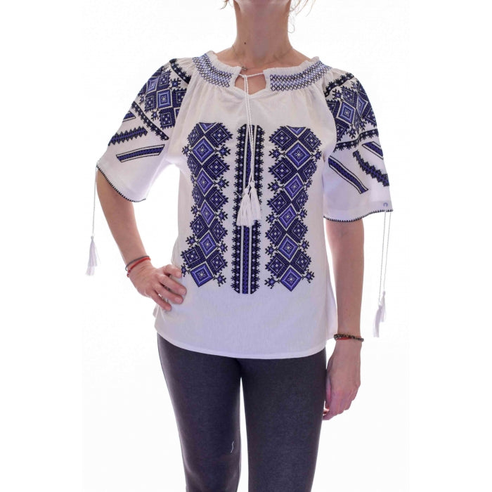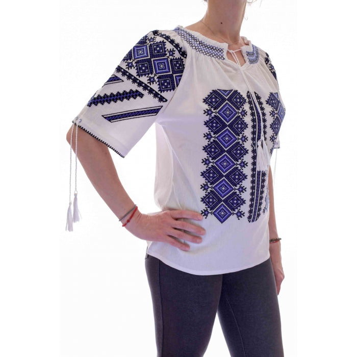 Ie traditionala romaneasca stilizata brodata la masina pe panza de bumbac de inalta calitate.