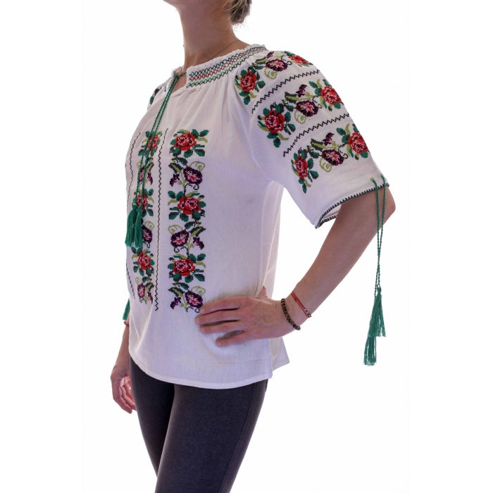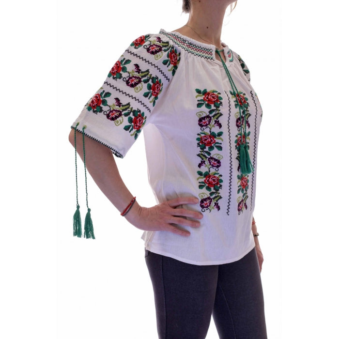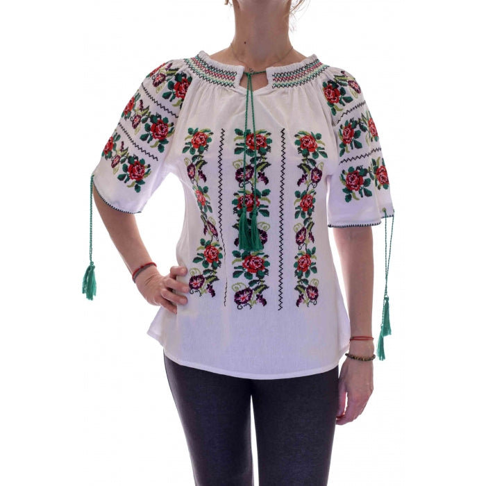 Ie traditionala romaneasca stilizata brodata la masina pe panza de bumbac de inalta calitate.