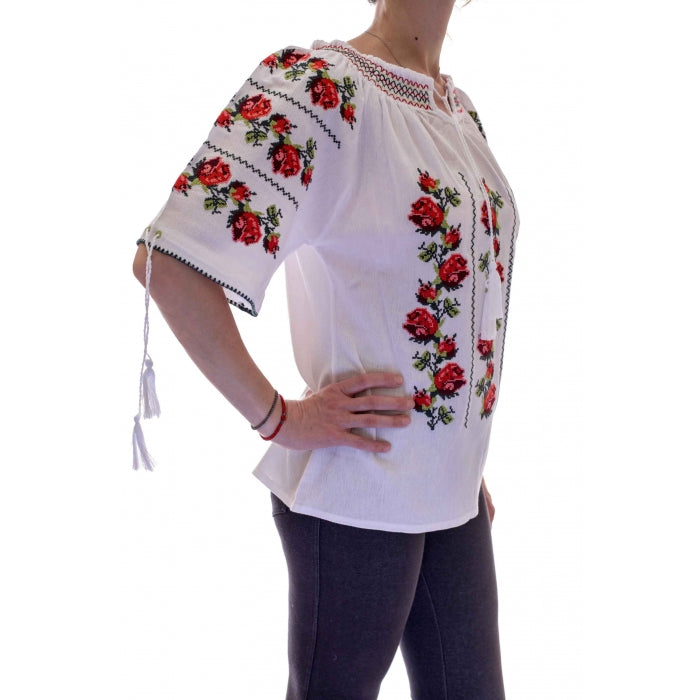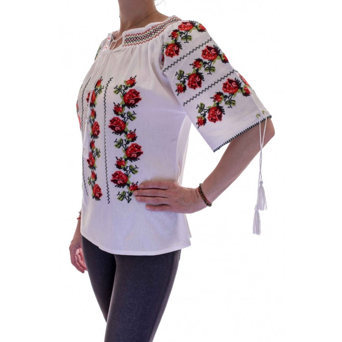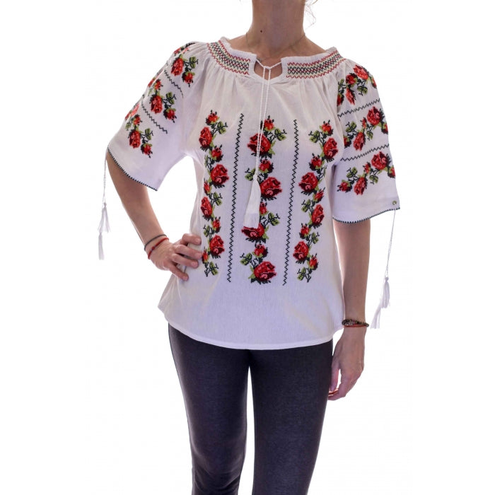Ie traditionala romaneasca stilizata brodata la masina pe panza de bumbac de inalta calitate.