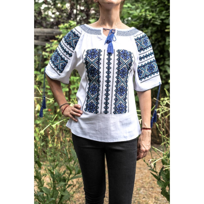 Ie Traditionala Romaneasca Stilizata brodata la masina pe panza de bumbac de inalta calitate.