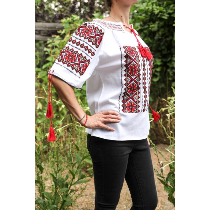 Ie Traditionala Romaneasca Stilizata brodata la masina pe panza de bumbac de inalta calitate.