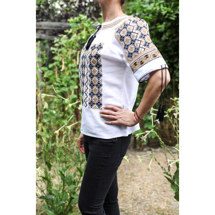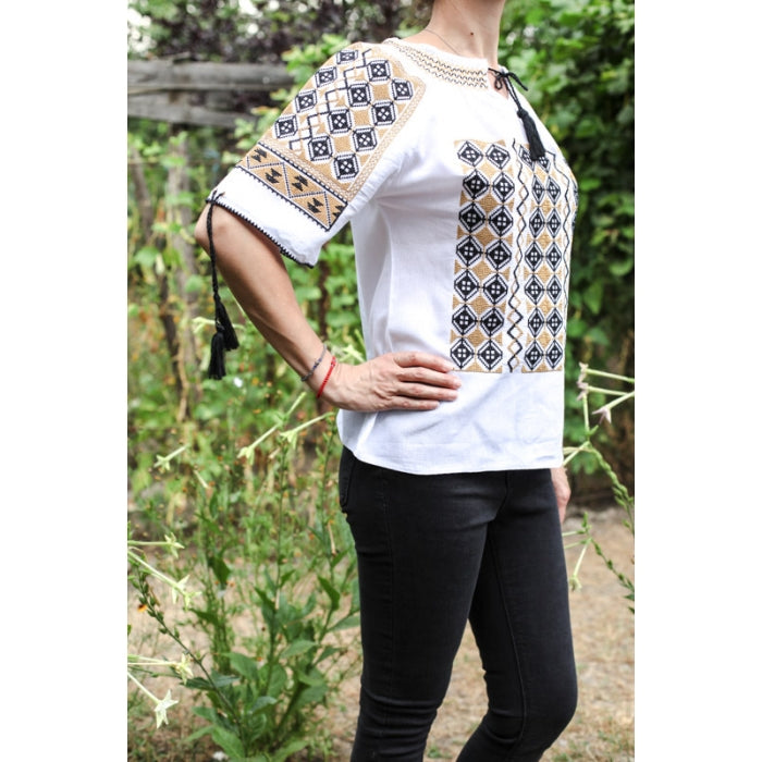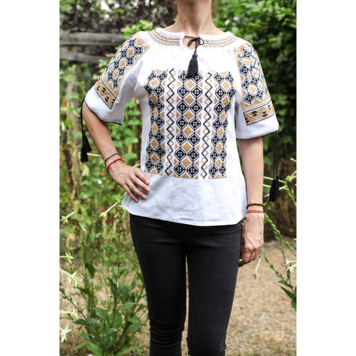 Ie Traditionala Romaneasca Stilizata brodata la masina pe panza de bumbac de inalta calitate.