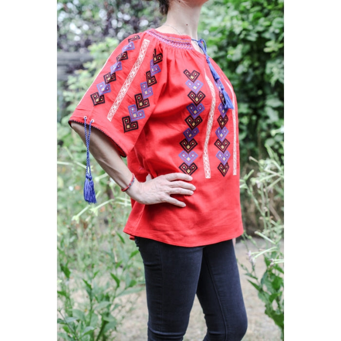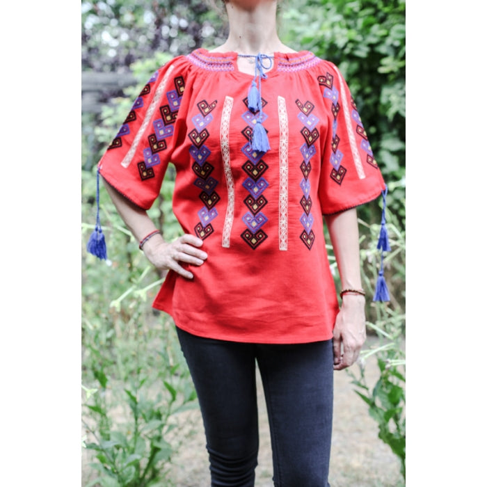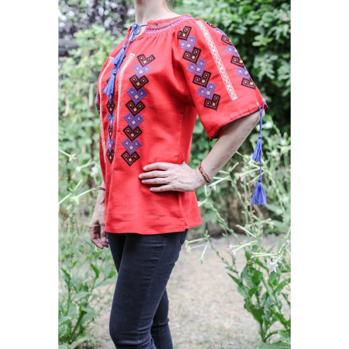 Ie Traditionala Romaneasca Stilizata brodata la masina pe panza de bumbac de inalta calitate.
