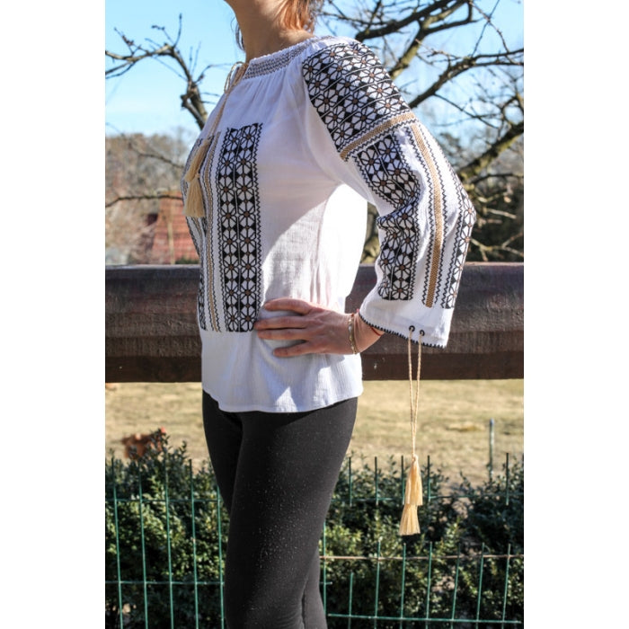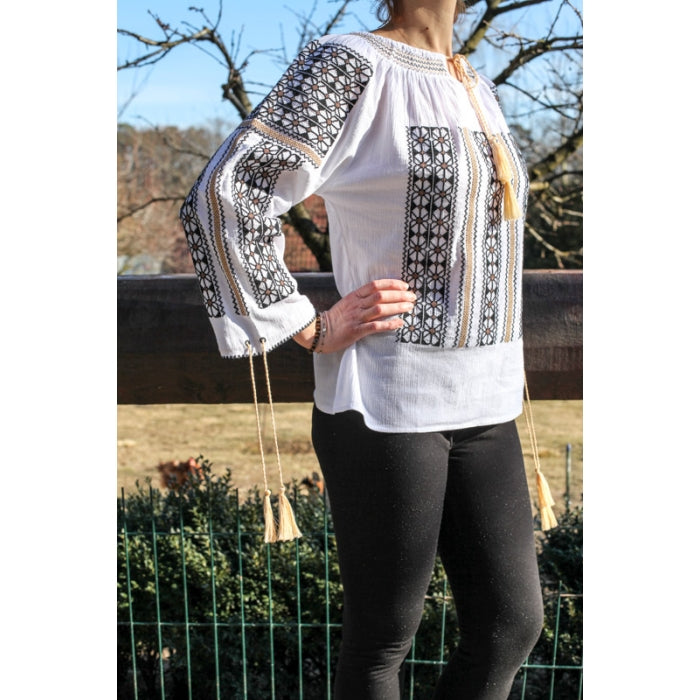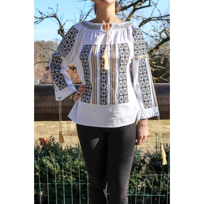 Ie Traditionala Romaneasca Stilizata brodata la masina pe panza de bumbac de inalta calitate.