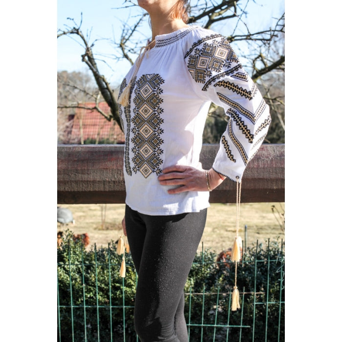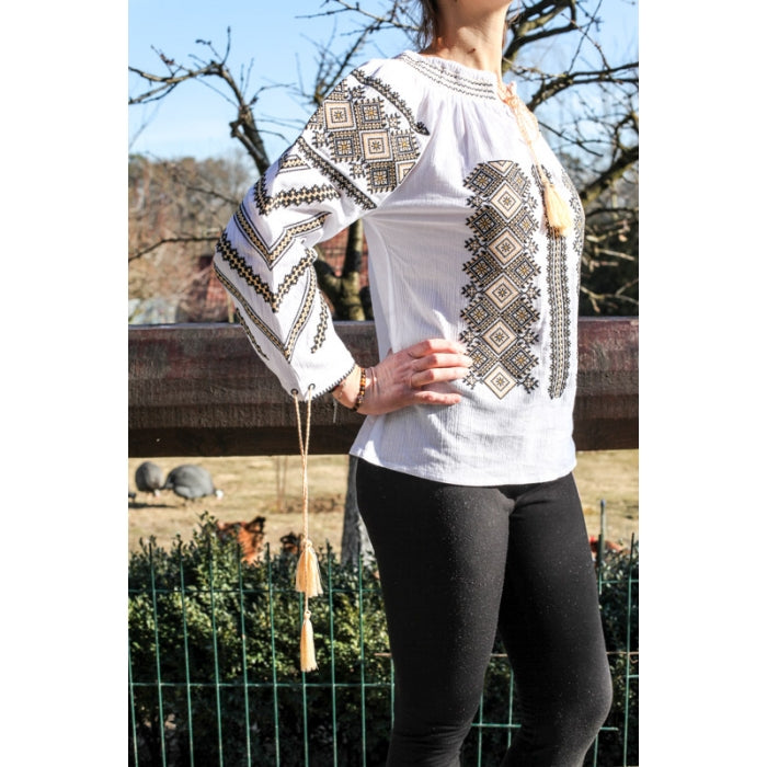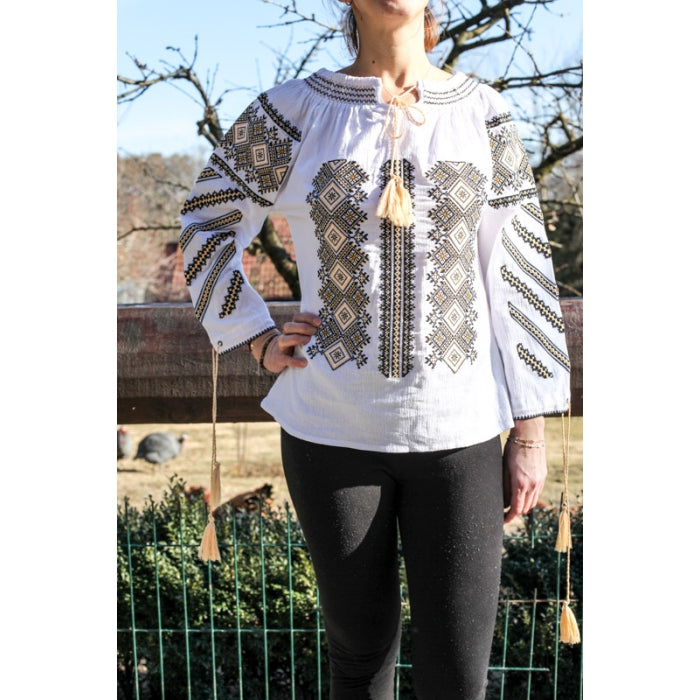 Ie Traditionala Romaneasca Stilizata brodata la masina pe panza de bumbac de inalta calitate.