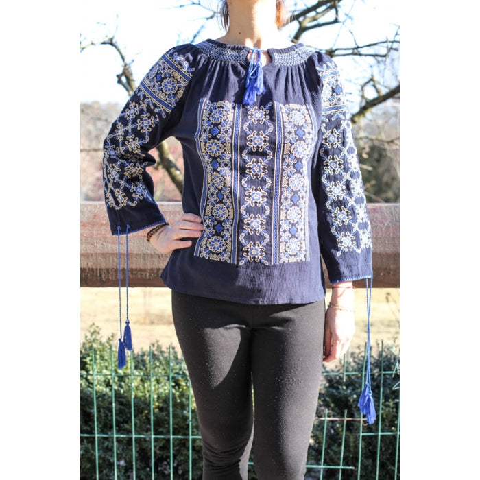Ie Traditionala Romaneasca Stilizata brodata la masina pe panza de bumbac de inalta calitate.