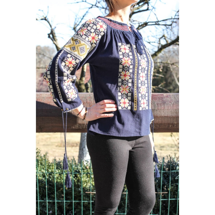 Ie Traditionala Romaneasca Stilizata brodata la masina pe panza de bumbac de inalta calitate.