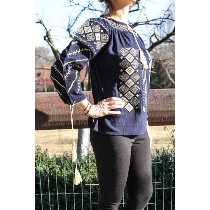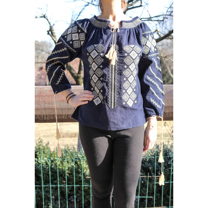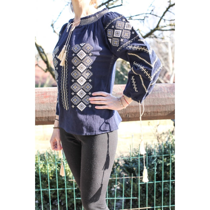 Ie Traditionala Romaneasca Stilizata brodata la masina pe panza de bumbac de inalta calitate.