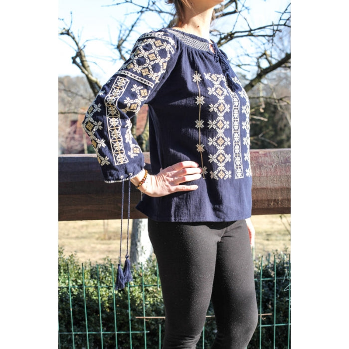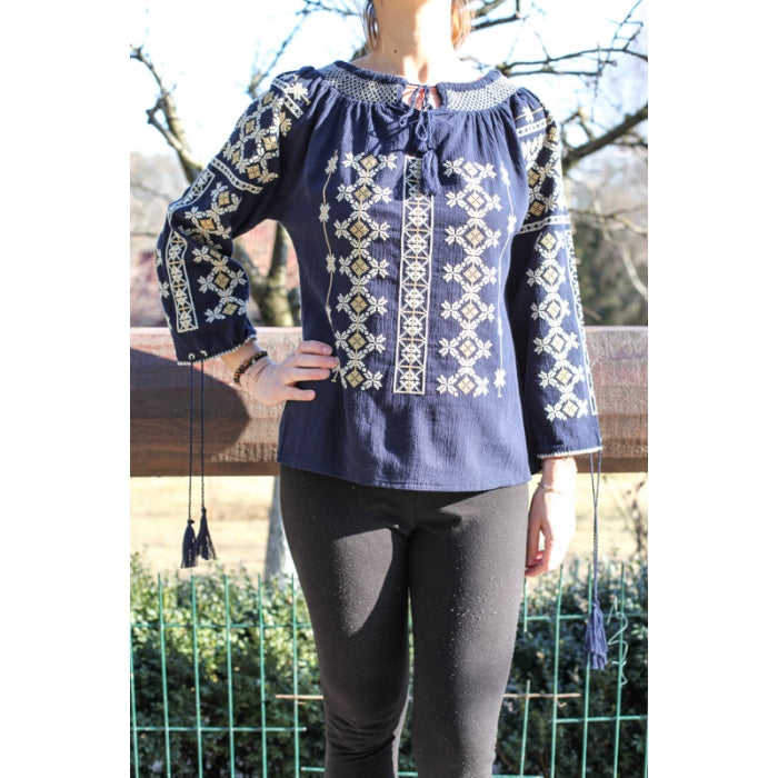 Ie Traditionala Romaneasca Stilizata brodata la masina pe panza de bumbac de inalta calitate.