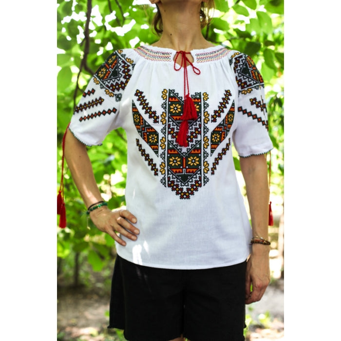Ie traditionala brodata cu elemente naturale bogate si stralucitoare. O ie romaneasca stilizata deosebita, plina de culoare si rafinament. Delicatetea broderiei, puritatea materialului o fac o piesa de rezistenta in orice garderoba. Comanda acum ianationala!