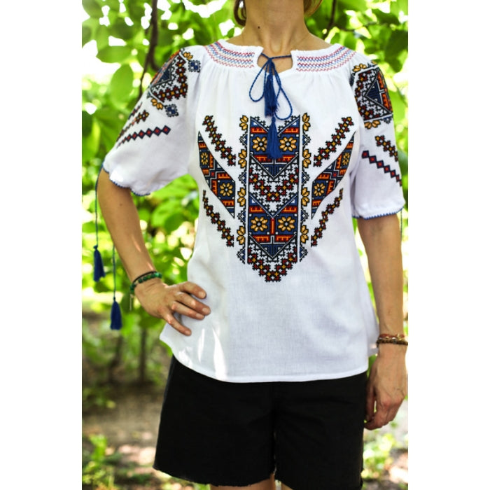 Ie traditionala brodata cu elemente naturale bogate si stralucitoare. O ie romaneasca stilizata deosebita, plina de culoare si rafinament. Delicatetea broderiei, puritatea materialului o fac o piesa de rezistenta in orice garderoba. Comanda acum ianationala!