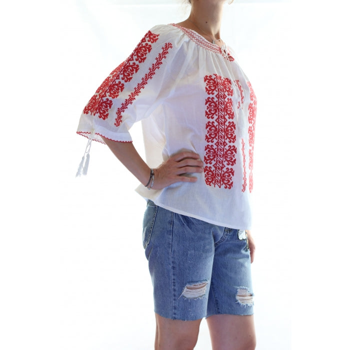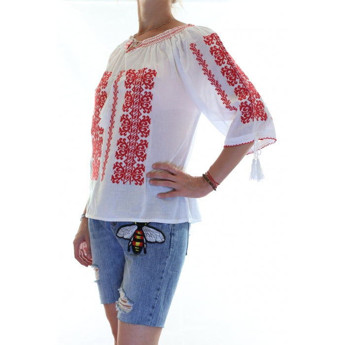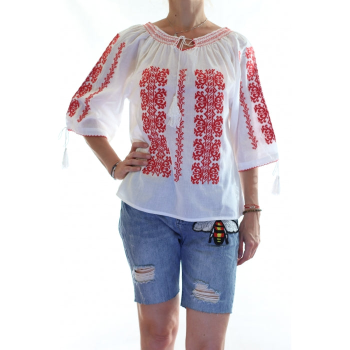 Bluza brodata la masina din panza de bumbac 100%.
