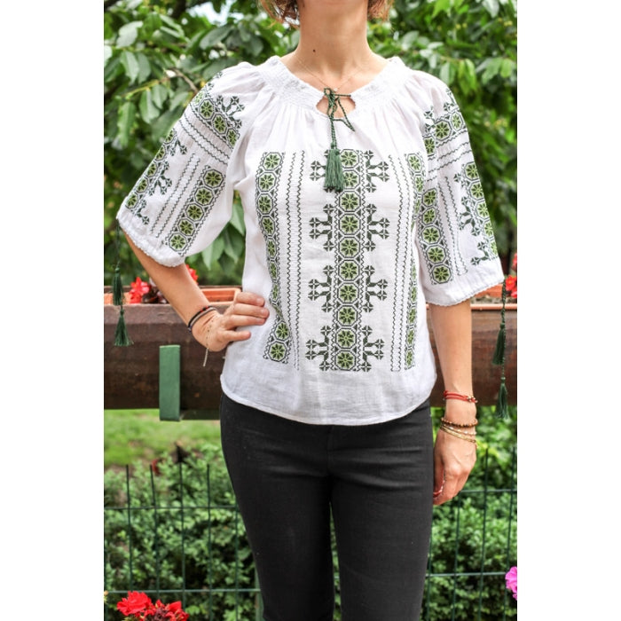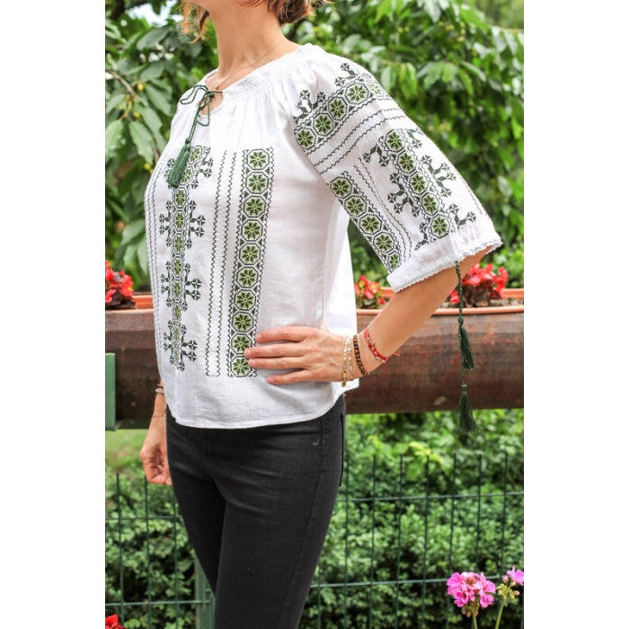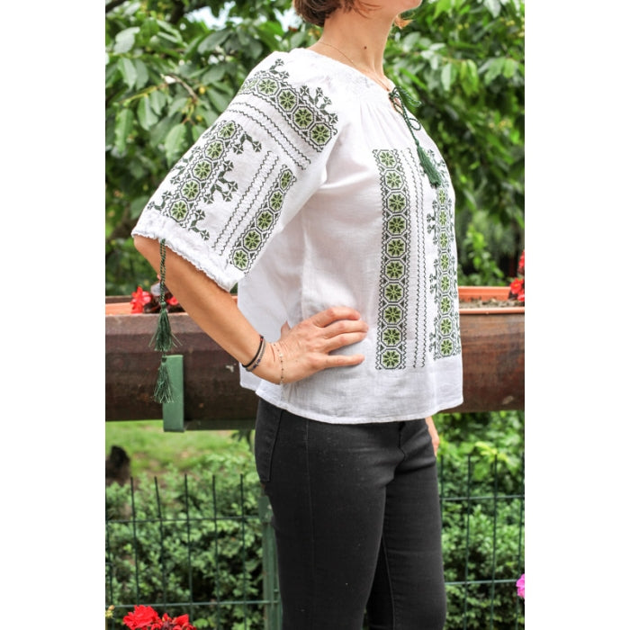 Bluza brodata la masina din panza de bumbac 100%.