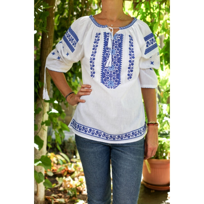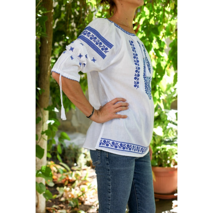 Bluza brodata la masina din panza de bumbac 100%.