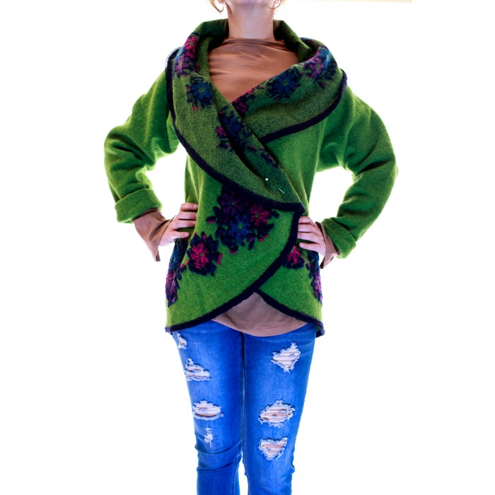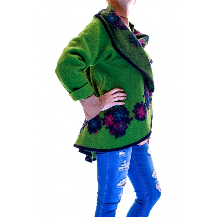 Poncho din lana cu maneci si model floral, material 80% lana, 20% poliester. Marime universala: 85 cm lungime.