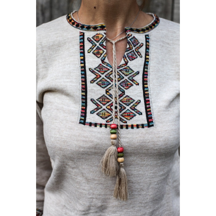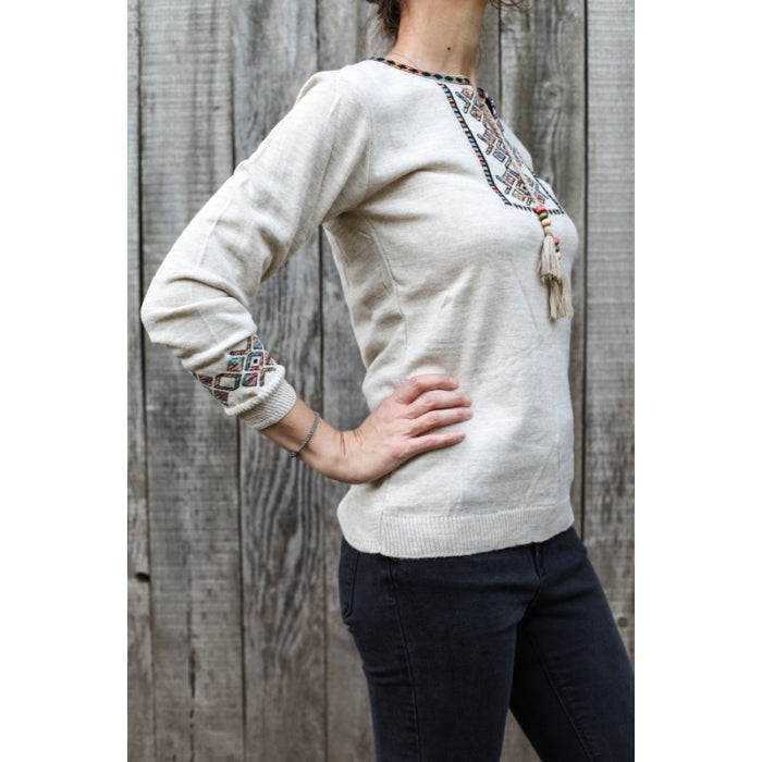 - Pulover din tricot cu motive stilizate traditionale romanesti. Marime universala.