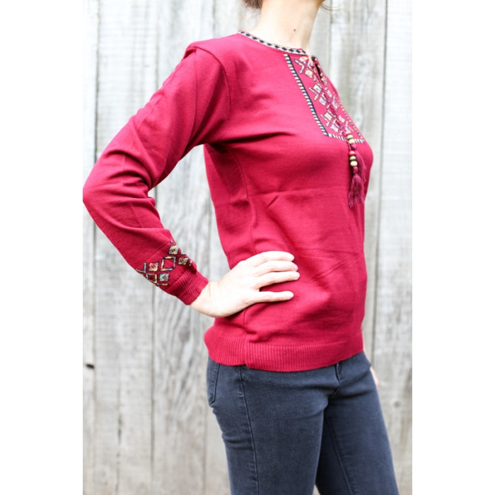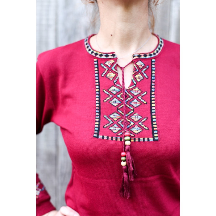 - Pulover din tricot cu motive stilizate traditionale romanesti. Marime universala.