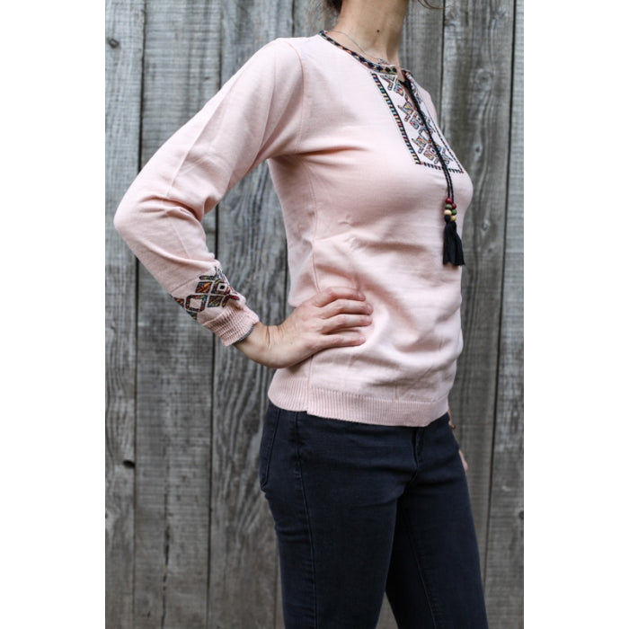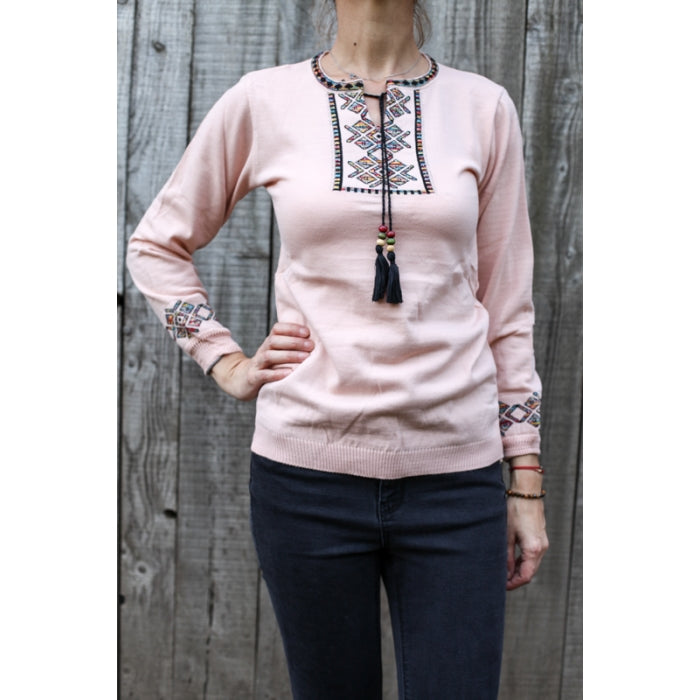 - Pulover din tricot cu motive stilizate traditionale romanesti. Marime universala.