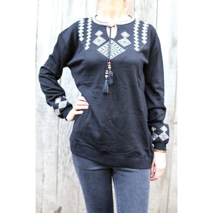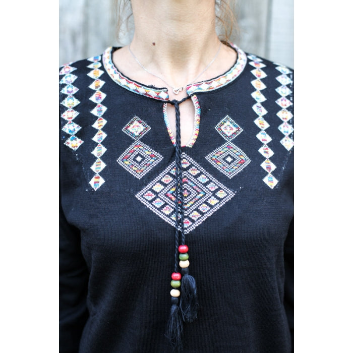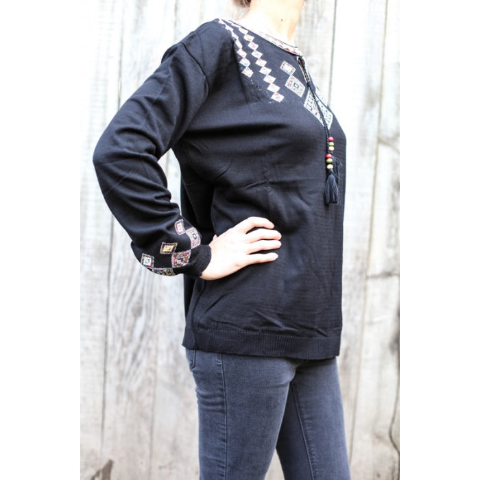 - Pulover din tricot cu motive stilizate traditionale romanesti. Marime universala.