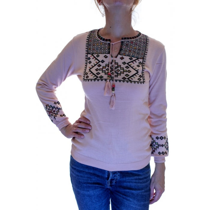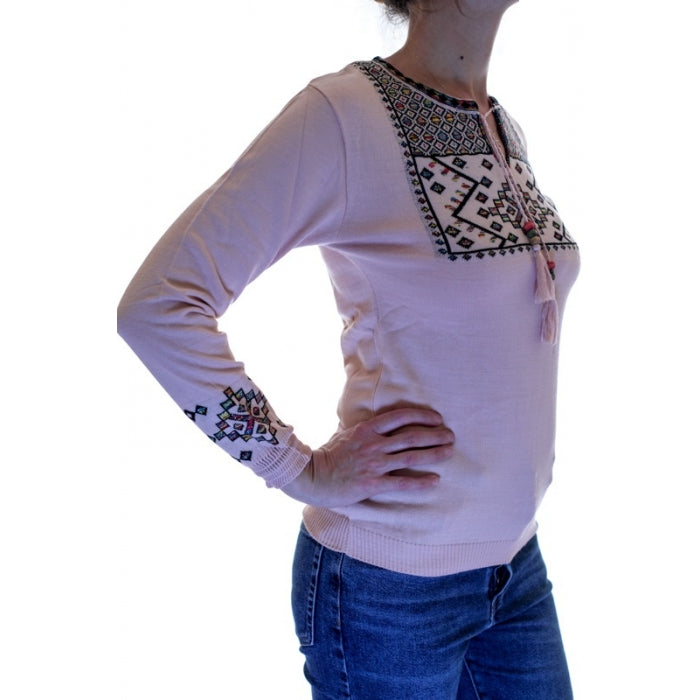 - Pulover din tricot cu motive stilizate traditionale romanesti. Marime universala.