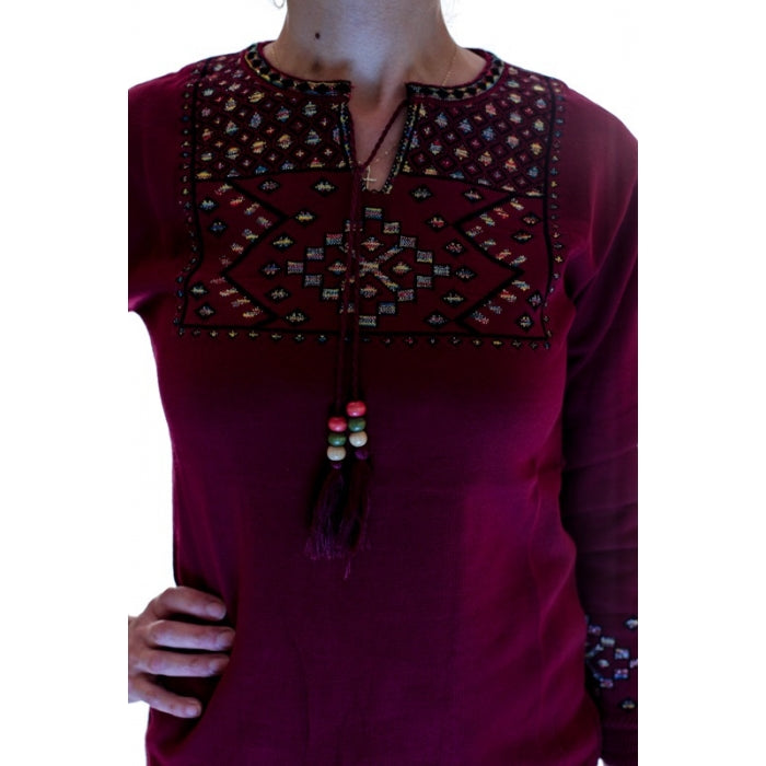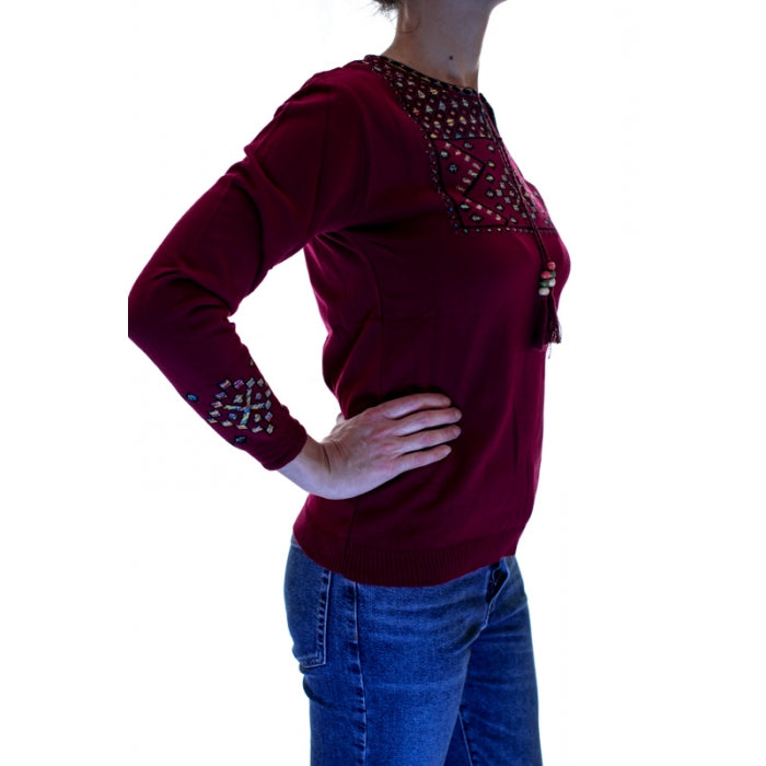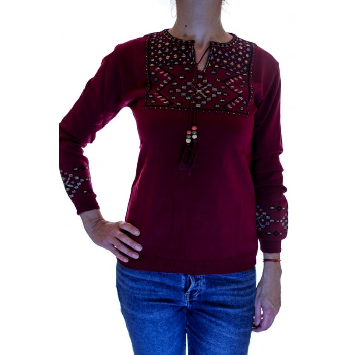 - Pulover din tricot cu motive stilizate traditionale romanesti. Marime universala.