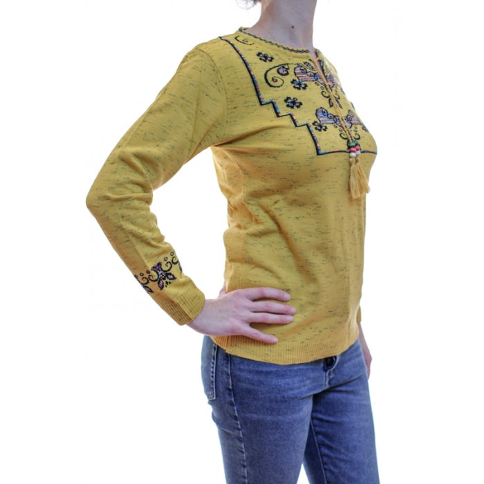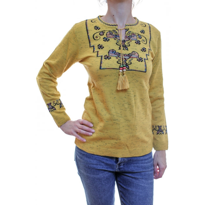 - Pulover din tricot cu motive stilizate traditionale romanesti. Marime universala.
