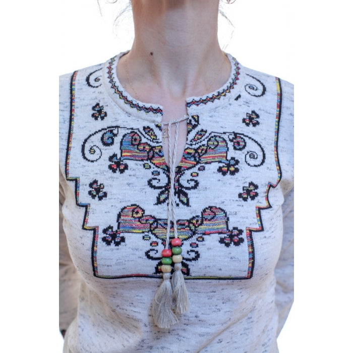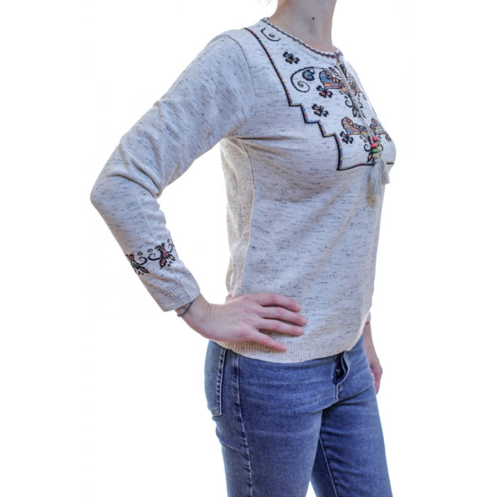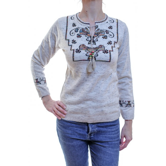 - Pulover din tricot cu motive stilizate traditionale romanesti. Marime universala.