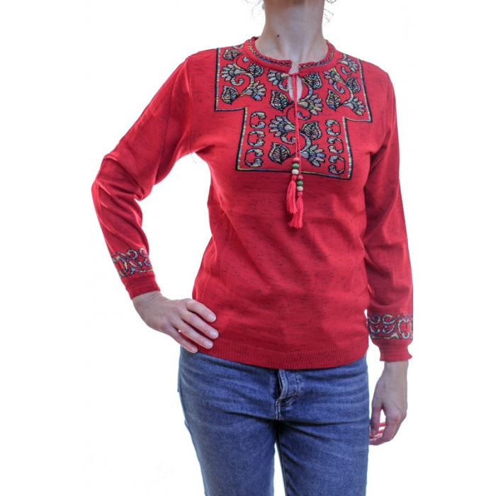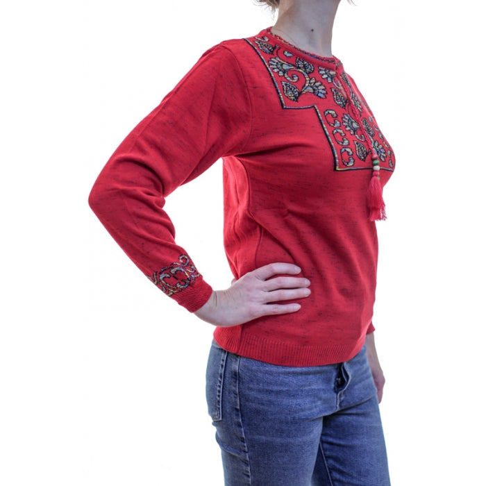 - Pulover din tricot cu motive stilizate traditionale romanesti. Marime universala.