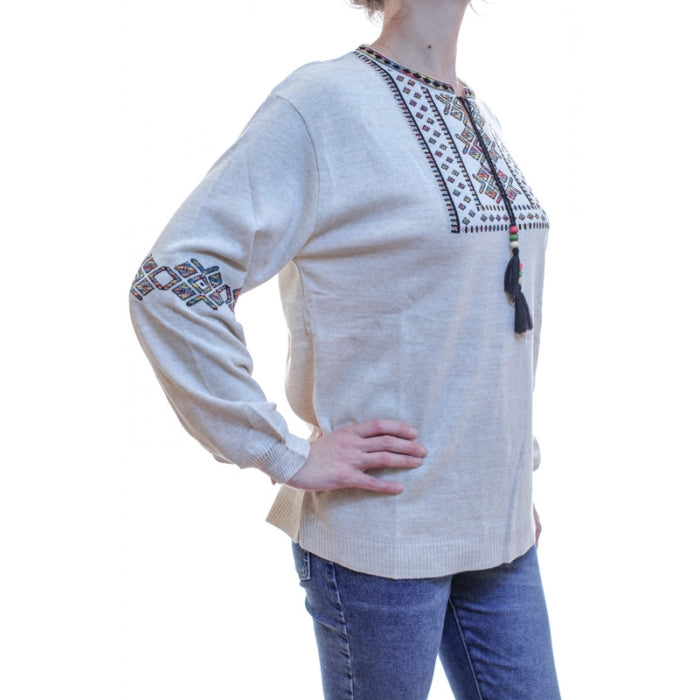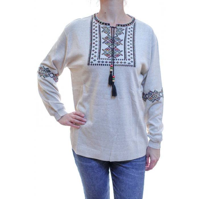 - Pulover din tricot cu motive stilizate traditionale romanesti. Marime universala.
