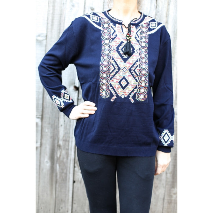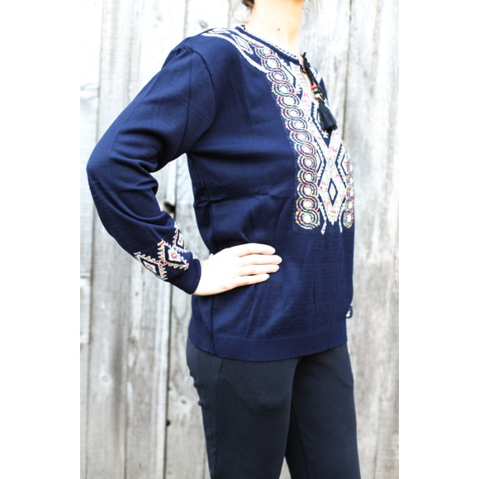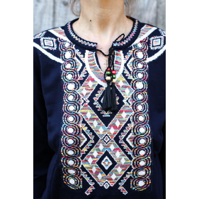 - Pulover din tricot cu motive stilizate traditionale romanesti. Marime universala.