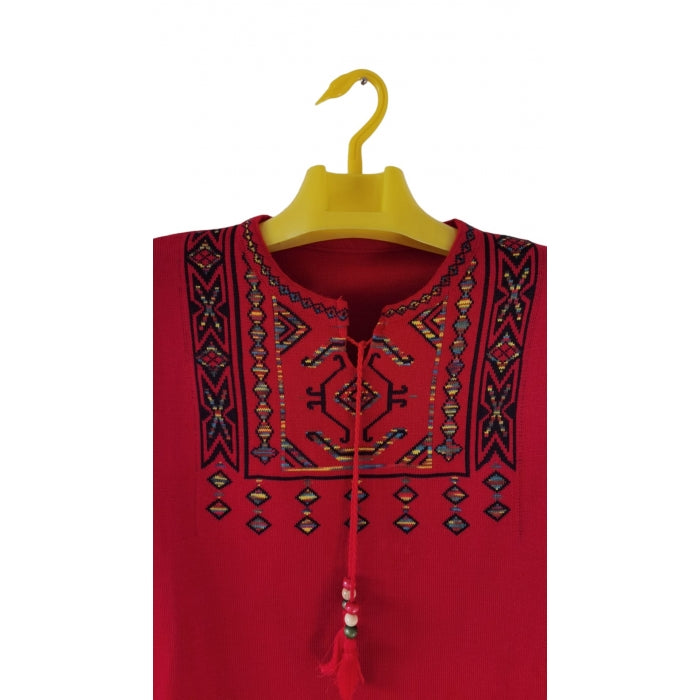 "Descoperă autenticitatea tradițiilor românești cu puloverul tricotat manual, cu motive stilizate unice. Mărime universală potrivită pentru circumferința bustului de 90 cm și lungimea de 64 cm. Oferind echilibru între tradiție și modernitate, acest pulover este alegerea perfectă pentru o notă distinctivă în garderoba ta."