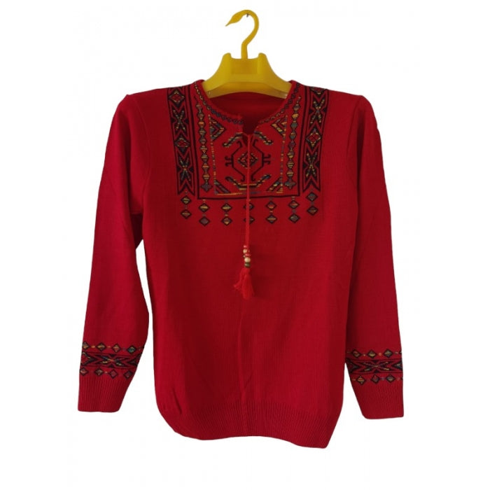 - Pulover din tricot cu motive stilizate traditionale romanesti. Marime universala.