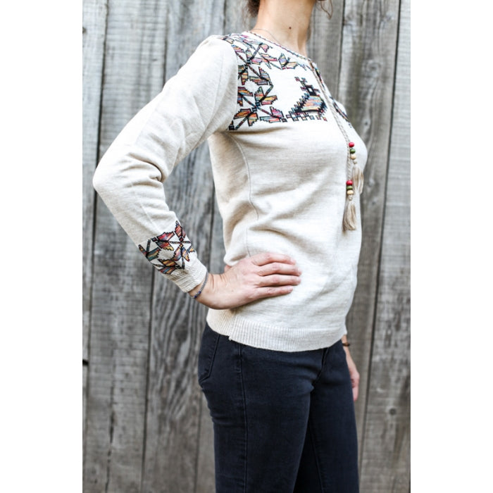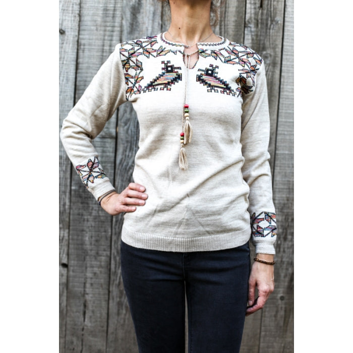 - Pulover din tricot cu motive stilizate traditionale romanesti. Marime universala.