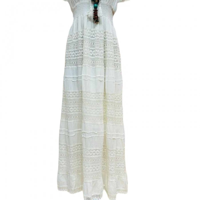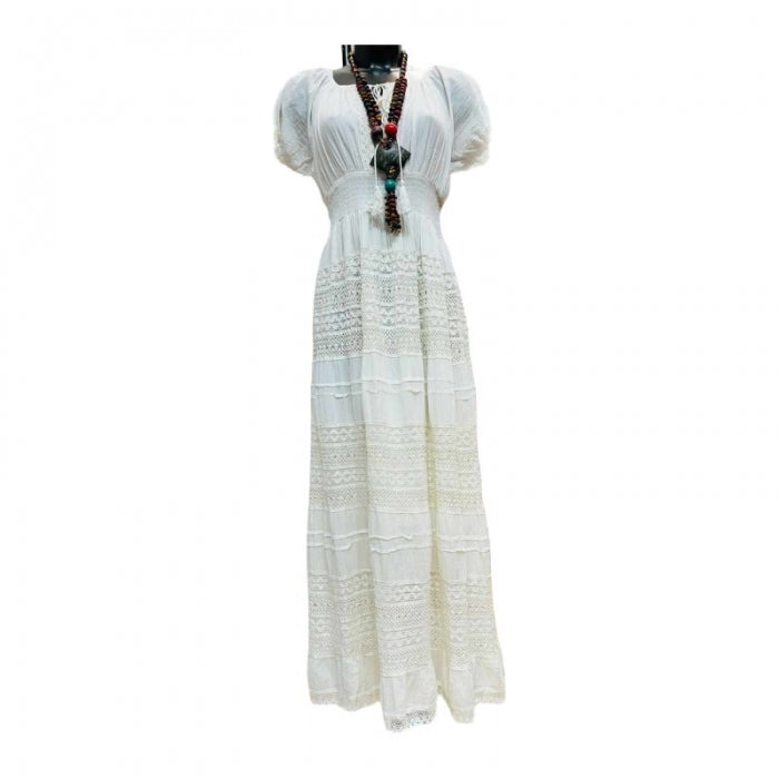Rochie Bej Tradițională - Eleganță Naturală cu Mâneci Scurte