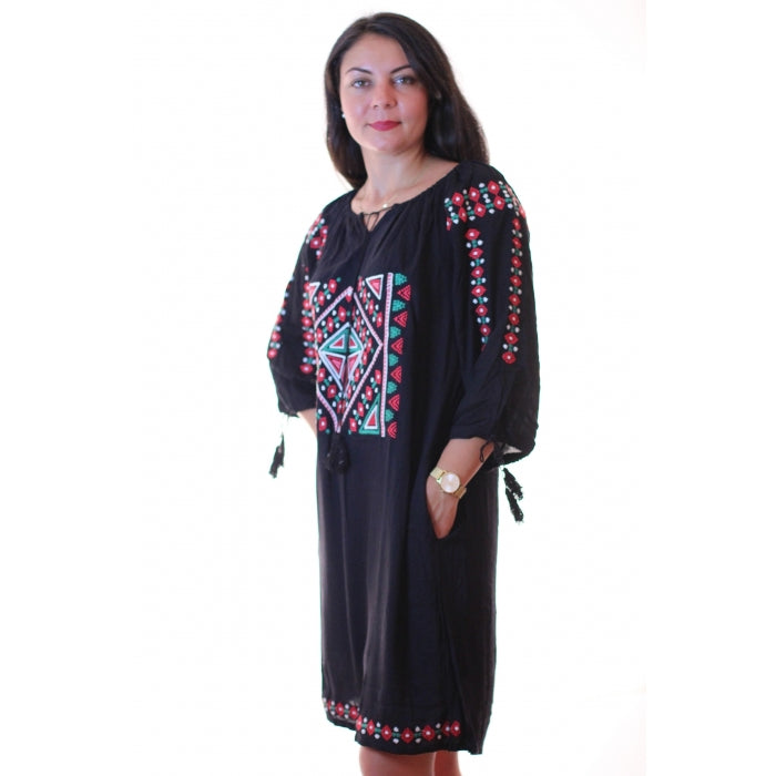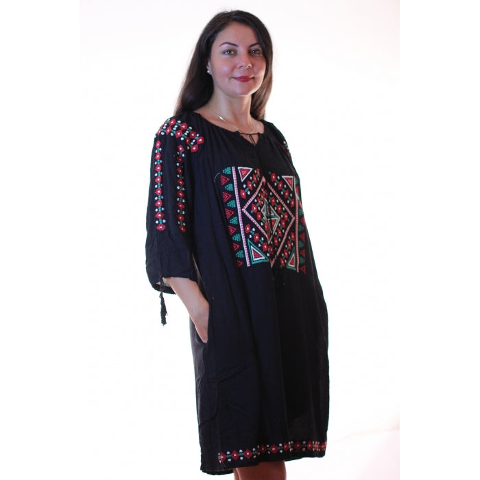 Rochie midi, din bumbac, cu broderie cusuta la masina.