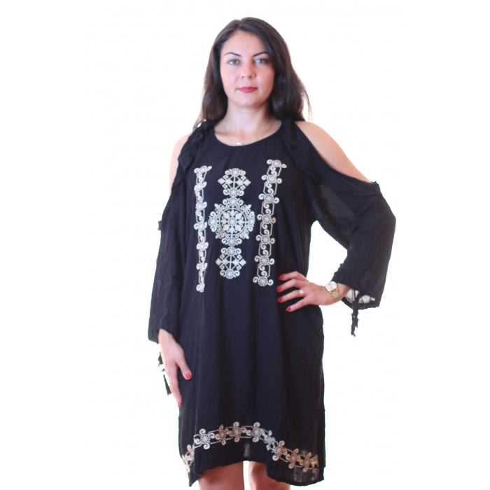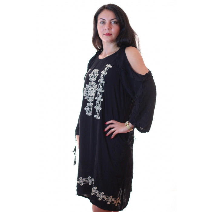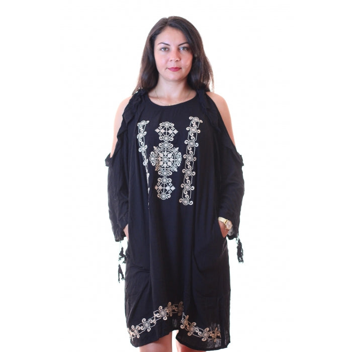 Rochie midi, din bumbac, cu broderie cusuta la masina.