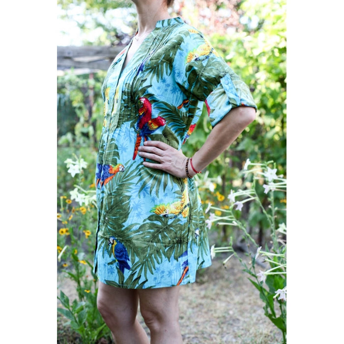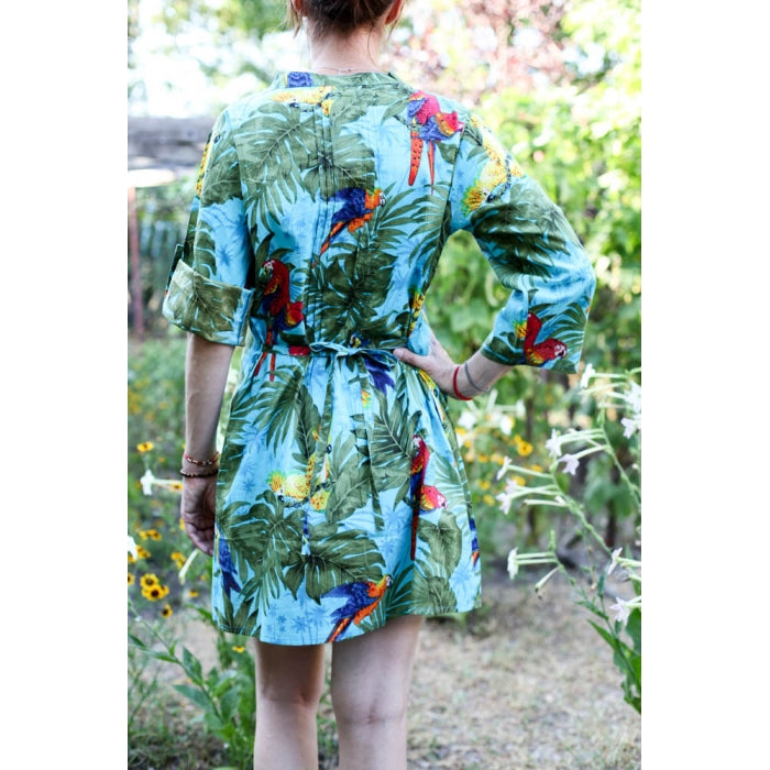 Rochie casual scurta din bumbac, cordon la spate.
