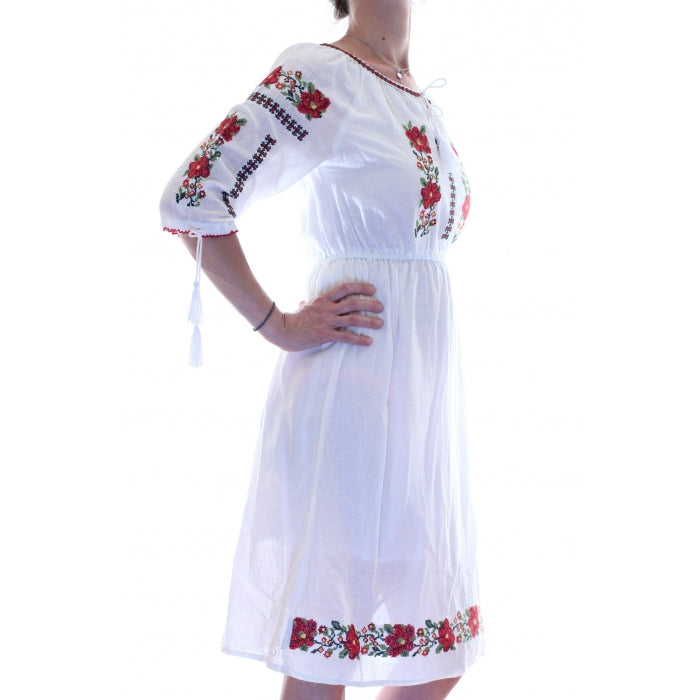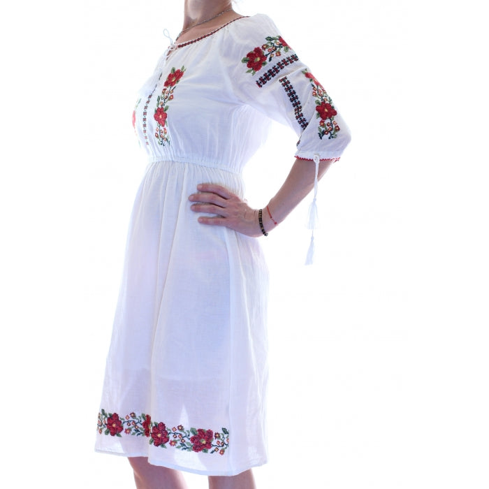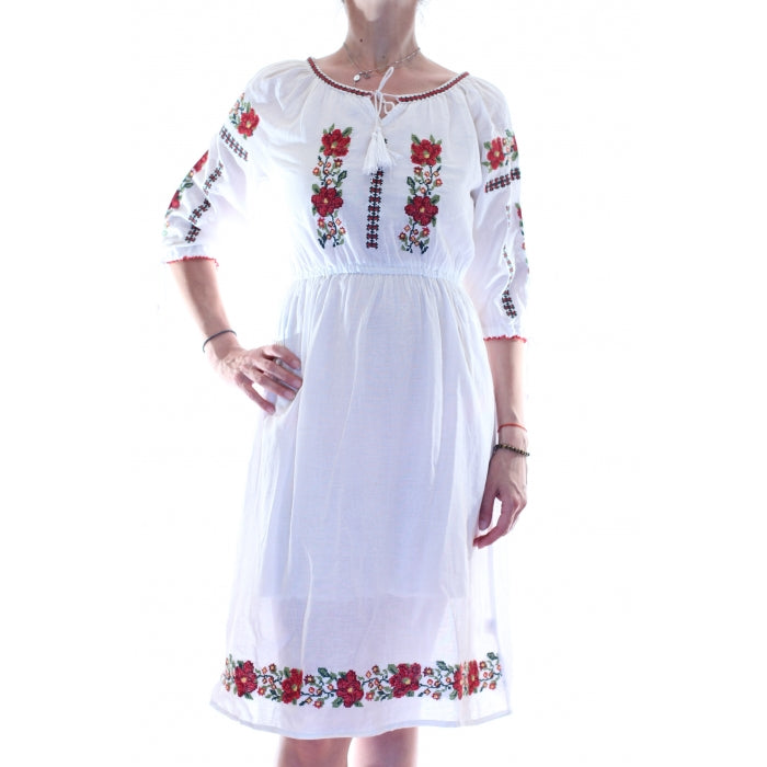 Rochie brodata cu model traditional romanesc. Material bumbac 100%.