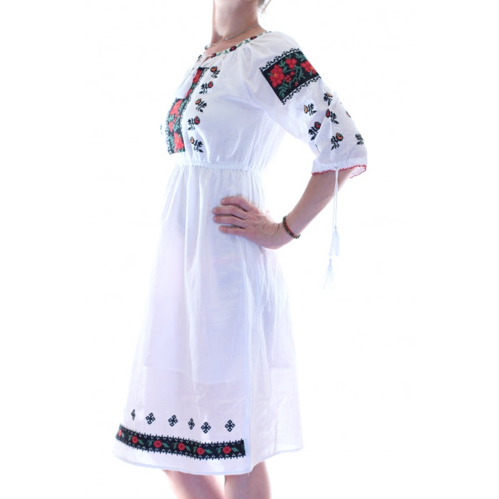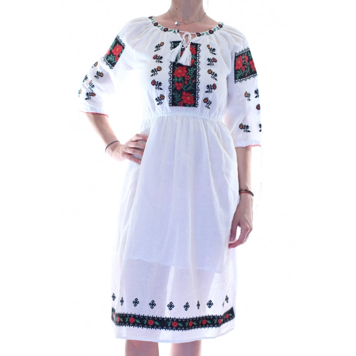 Rochie brodata cu model traditional romanesc. Material bumbac 100%.