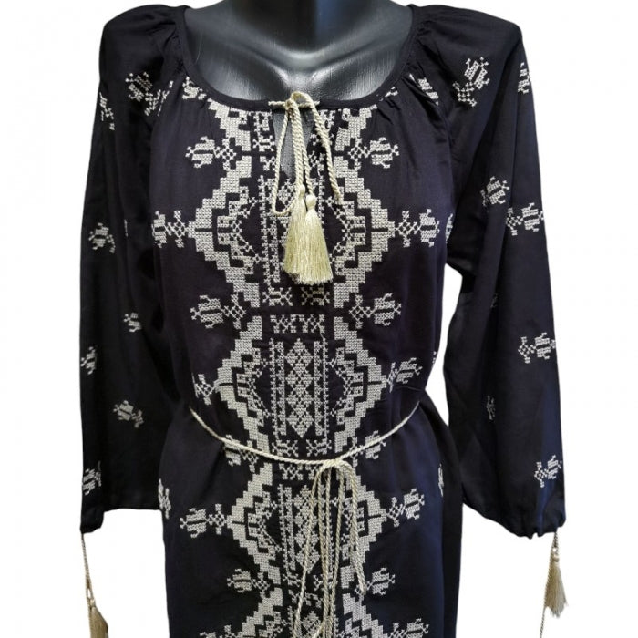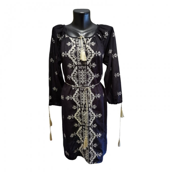 Rochie Neagră Brodată cu Motive Tradiționale