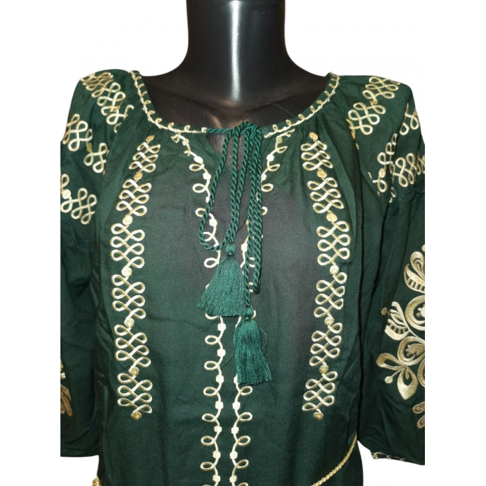 Rochiile tradiționale reprezintă o adevărată operă de artă ce îmbină istoria și tradiția cu rafinamentul modern. La IiRomanesti.com punem la dispoziție o colecție diversificată de rochii tradiționale românești, realizate cu măiestrie din materiale premium precum bumbacul și inul. Fiecare rochie este cusută la masina și este decorată cu broderii autentice romanesti, inspirate din motivele populare specifice regiunilor românești, pentru a reda cu fidelitate farmecul portului tradițional.