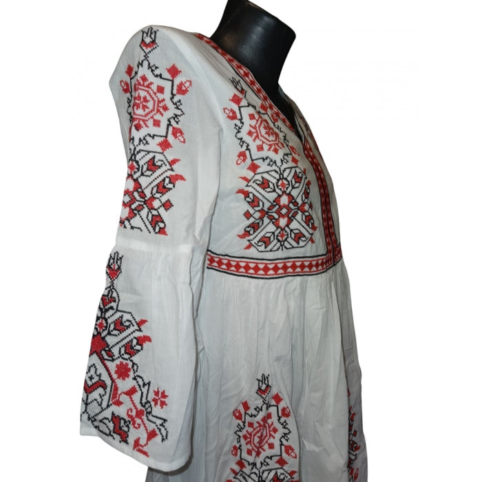 Rochiile tradiționale reprezintă o adevărată operă de artă ce îmbină istoria și tradiția cu rafinamentul modern. La IiRomanesti.com punem la dispoziție o colecție diversificată de rochii tradiționale românești, realizate cu măiestrie din materiale premium precum bumbacul și inul. Fiecare rochie este cusută la masina și este decorată cu broderii autentice romanesti, inspirate din motivele populare specifice regiunilor românești, pentru a reda cu fidelitate farmecul portului tradițional.