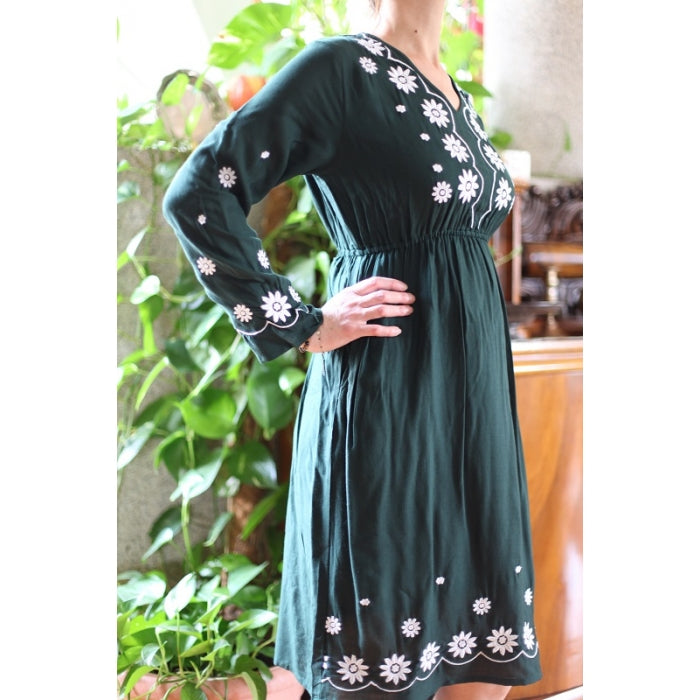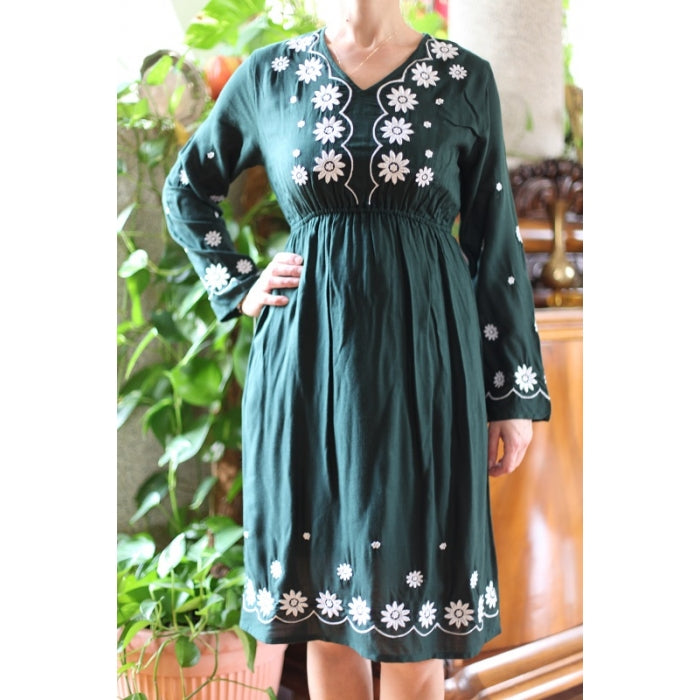 Rochie brodata cu elastic in talie, include captuseala/jupa.