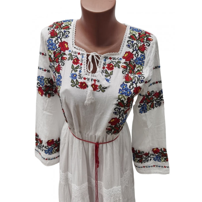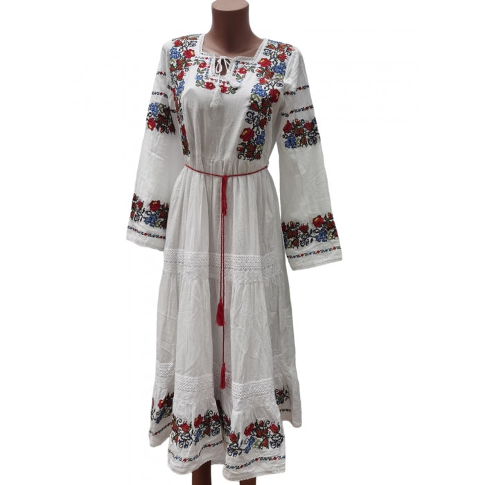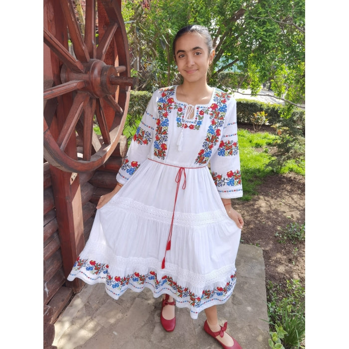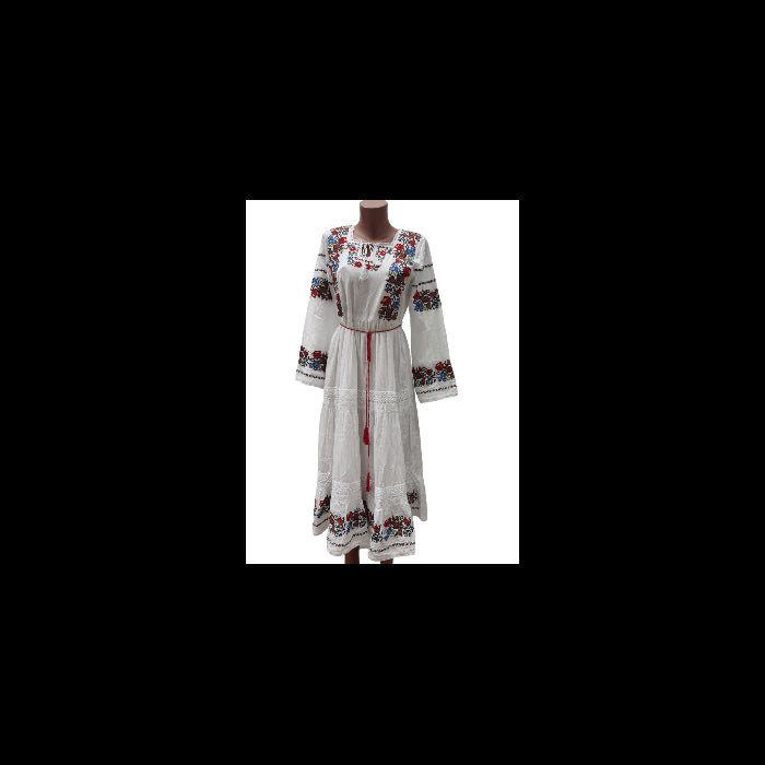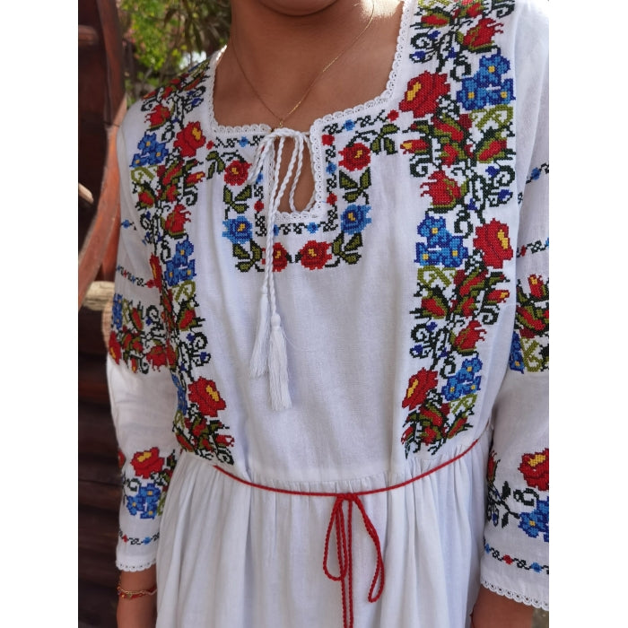Rochie model traditional brodat, material bumbac 100%, jupa la interior din bumbac.