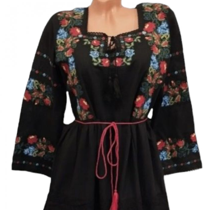 Model tradițional brodat: Design autentic inspirat din motivele tradiționale românești, atent brodate pentru un plus de eleganță.